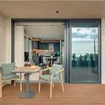 Här finns en terrass med utsikt över havet. I badrummet finns även en dusch.